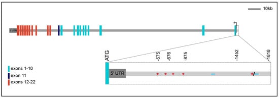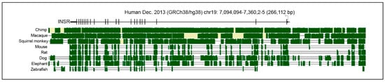 - Seino, S.; Seino, M.; Nishi, S.; Bell, G.I. Structure of the human Insulin Receptor gene and characterization of its promoter. Proc. Natl. Acad. Sci. USA 1989, 86, 114–118. [Google Scholar] [CrossRef] [PubMed]