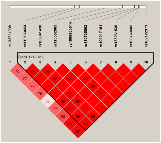 - Barrett, J.C.; Fry, B.; Maller, J.; Daly, M.J. Haploview: Analysis and visualization of LD and haplotype maps. Bioinformatics 2005, 21, 263–265. [Google Scholar] [CrossRef]