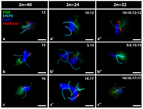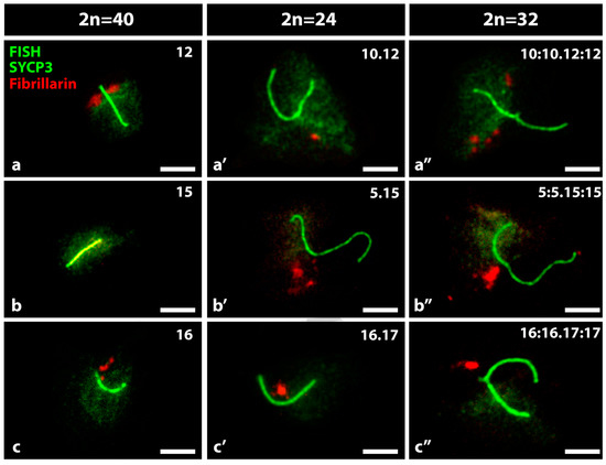 - Berríos, S.; Fernández-Donoso, R.; Pincheira, J.; Page, J.; Manterola, M.; Cerda, M.C. Number and nuclear localisation of nucleoli in mammalian spermatocytes. Genetica 2004, 121, 219–228. [Google Scholar] [CrossRef]