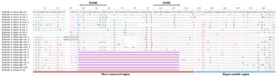 - Edgar, R.C. MUSCLE: multiple sequence alignment with high accuracy and high throughput. Nucleic Acids Res. 2004, 32, 1792–1797. [Google Scholar] [CrossRef]