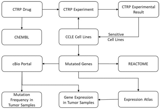 In the past decade, data scientists have developed numerous biological databases to help biologists analyze the underlying genetic mechanisms of cancer. NCI-60 [], the first cancer cell line database, remained a unique resource of in vitro drug discovery for many years []. Recently, large pharmacogenomic databases such as the Cancer Cell Line Encyclopedia (CCLE) [], Genomics of Drug Sensitivity in Cancer (GDSC), and the Cancer Therapeutics Response Portal (CTRP) have also emerged. The CCLE provides genomic and transcriptomic information on 947 human cancer cell lines and the drug response data for 24 compounds []. The CTRP provides drug response information for more than 860 cancer cell lines against 481 compounds []. Furthermore, in addition to cell line data, the omics data of thousands of cancer patients were also generated by The Cancer Genome Atlas (TCGA) and the European Molecular Biology Laboratory (EMBL) [].