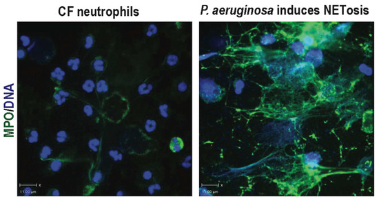 - Yoo, D.G.; Floyd, M.; Winn, M.; Moskowitz, S.M.; Rada, B. NET formation induced by Pseudomonas aeruginosa cystic fibrosis isolates measured as release of myeloperoxidase-DNA and neutrophil elastase-DNA complexes. Immunol. Lett. 2014, 160, 186–194. [Google Scholar] [CrossRef] [PubMed]