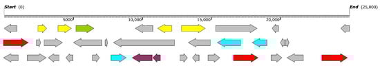 - Weber, T.; Blin, K.; Duddela, S.; Krug, D.; Kim, H.U.; Bruccoleri, R.; Lee, S.Y.; Fischbach, M.A.; Muller, R.; Wohlleben, W.; et al. antiSMASH 3.0—A comprehensive resource for the genome mining of biosynthetic gene clusters. Nucleic Acids Res. 2015, 43, W237–W243. [Google Scholar] [CrossRef] [PubMed]