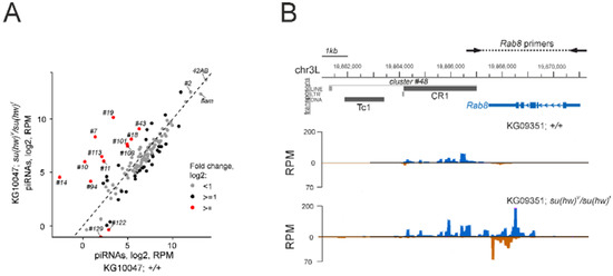 - Brennecke, J.; Aravin, A.A.; Stark, A.; Dus, M.; Kellis, M.; Sachidanandam, R.; Hannon, G.J. Discrete small RNA-generating loci as master regulators of transposon activity in Drosophila. Cell 2007, 128, 1089–1103. [Google Scholar] [CrossRef] [PubMed]