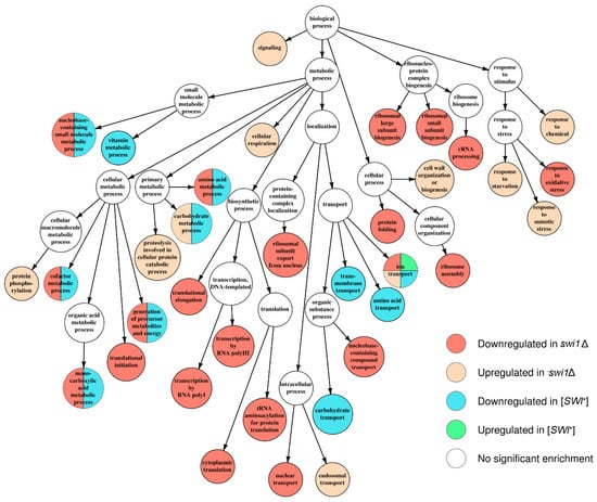 3.3. SWI1 Deletion Modulates a Higher Number of Biological Processes and Molecular Functions than the [SWI+] Prion