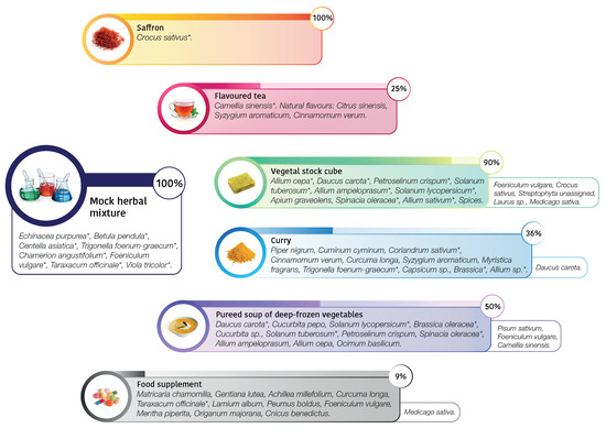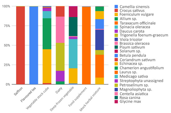 Bruno, A.; Sandionigi, A.; Agostinetto, G.; Bernabovi, L.; Frigerio, J.; Casiraghi, M.; Labra, M. Food Tracking Perspective: DNA Metabarcoding to Identify Plant Composition in Complex and Processed Food Products. Genes 2019, 10, 248. https://doi.org/10.3390/genes10030248