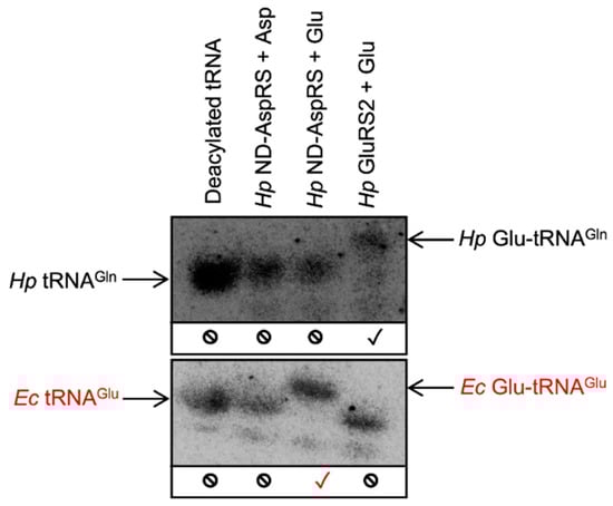 3.1. H. pylori ND-AspRS Appears to Aminoacylate H. pylori tRNAGln with Aspartate and Glutamate