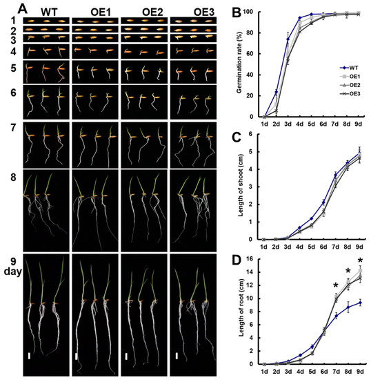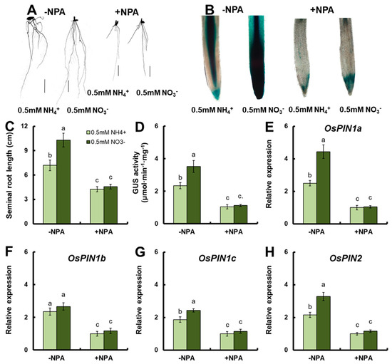 - Sun, H.; Tao, J.; Bi, Y.; Hou, M.; Lou, J.; Chen, X.; Zhang, X.; Luo, L.; Xie, X.; Yoneyama, K.; et al. OsPIN1b is Involved in Rice Seminal Root Elongation by Regulating Root Apical Meristem Activity in Response to Low Nitrogen and Phosphate. Sci. Rep. 2018, 8, 13014. [Google Scholar] [CrossRef]