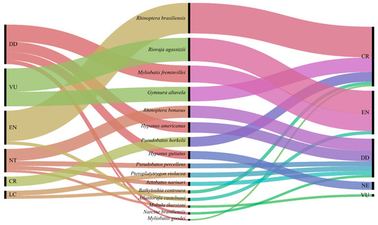 Ferrette BLdS, Domingues RR, Rotundo MM, Miranda MP, Bunholi IV, De Biasi JB, Oliveira C, Foresti F, Mendonça FF. DNA Barcode Reveals the Bycatch of Endangered Batoids Species in the Southwest Atlantic: Implications for Sustainable Fisheries Management and Conservation Efforts. Genes. 2019; 10(4):304. https://doi.org/10.3390/genes10040304