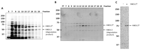The following are available online at https://www.mdpi.com/2073-4425/10/4/315/s1, Figure S1: Anti-His western blot analysis of the flow-through (FT) and fractions 7–19 of hNEIL3FL separated by FPLC on a Mono S 5/50 GL column.