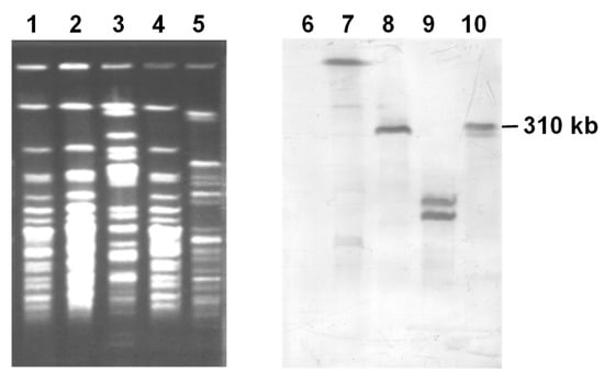 DNA isolation, Southern blot analysis, PCR, DNA sequencing, and other DNA manipulations were performed according to standard procedures as described in Reference []. Pulsed-field gel electrophoresis was performed in accordance with the manufacturer’s instructions (Bio-Rad Laboratories, Hercules, CA, USA).