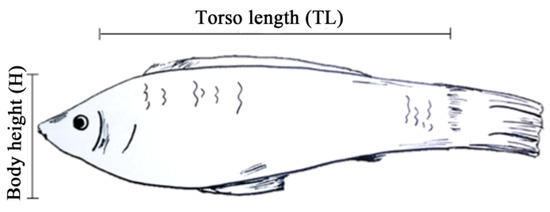 We purchased 184 white sailfin mollies at five to six months of age from Shanghai Yuyi Tropical Ornamental Fish Farm Corporation. Classification of body shape was based on the general market classification criteria. The torso length (TL) and body height (H) of each white sailfin molly were measured using a Vernier caliper (Figure 1) and the ratio of TL and H (TL/H) was calculated and used as an index for dwarfism and for subsequent analysis. The least squares algorithm of the SAS software package (SAS 9.2, SAS Institute Inc., Cary, NC, USA) was used to analyze the phenotypic values, which were then expressed as mean ± SE.