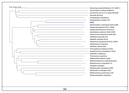 - Bolhuis, H.; Palm, P.; Wende, A.; Falb, M.; Rampp, M.; Rodriguez-valera, F.; Pfeiffer, F.; Oesterhelt, D. The genome of the square archaeon Haloquadratum walsbyi: Life at the limits of water activity. BMC Genom. 2006, 7, 1–12. [Google Scholar] [CrossRef]