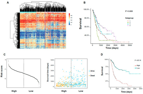 Figure 6B). We also performed the pairwise survival analyses between these subgroups and identified three significant pairs, i.e., subgroups 1 versus 4, subgroups 2 versus 3, subgroups 2 versus 4 (