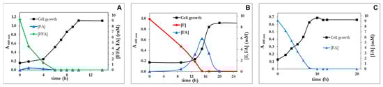It is worth noting that these experiments confirmed the fact that the maximal cell growth of P. pseudoalcaligenes with FFA was higher than with F followed by FA (Table 2).