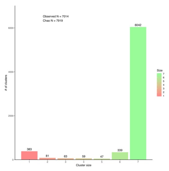 - Chao, A. Non-parametric estimation of the classes in a population. Scand. J. Stat. 1984, 11, 265–270. [Google Scholar] [CrossRef]