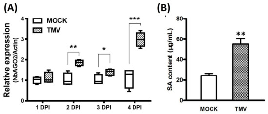 3.3. Expression of NbAGO2 was Induced by Both MeSA Treatment and TMV Infection