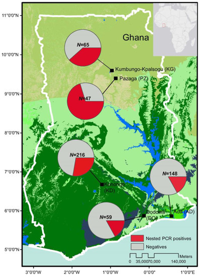 We are greatly indebted to the students and technicians from the University of Ghana for field sample collection; the communities and hospitals for their support and willingness to participate in this research; Samuel Johnson for assisting DNA extraction of the samples; and Prakruthi Reddy for making the ARC-GIS map.