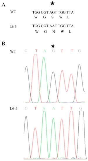 3.7. The Expression of Sme2.5_06210.1_g00004.1 Decreased Significantly in the L6-5 Mutant