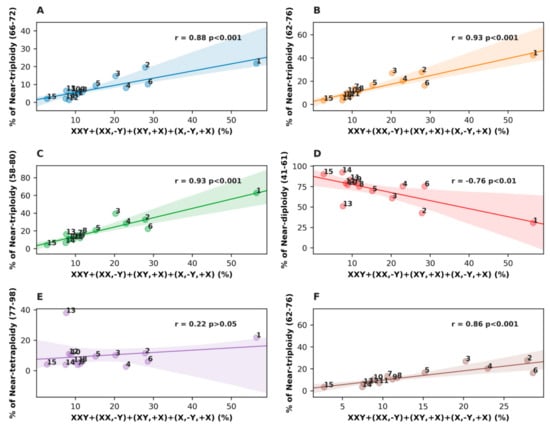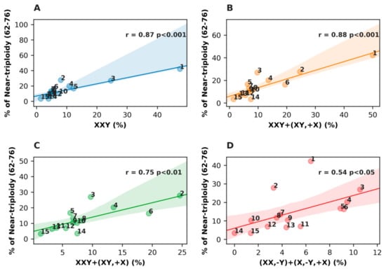 3.2. Analysis of the Sex Chromosome Sets with #X-Disomy in Each Malignant Tumor Cohort in Relation to Ploidy for their Karyotypes