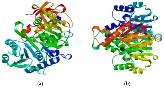 - Waterhouse, A.; Bertoni, M.; Bienert, S.; Studer, G.; Tauriello, G.; Gumienny, M.; Heer, F.T.; de Beer, T.A.P.; Rempfer, C.; Bordoli, L.; et al. SWISS-MODEL: homology modelling of protein structures and complexes. Nucleic Acids Res. 2018, 46, W296–W303. [Google Scholar] [CrossRef]