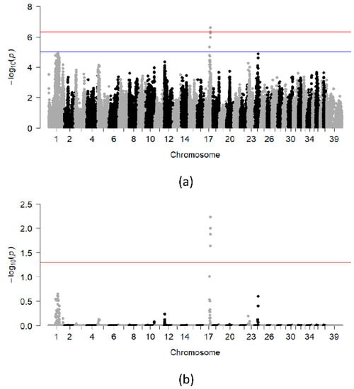 - Purcell, S.; Neale, B.; Todd-Brown, K.; Thomas, L.; Ferreira, M.; Bender, D.; Maller, J.; Sklar, P.; de Bakker, P.; Daly, M.; et al. PLINK: A tool set for whole-Genome association and population-based linkage analyses. Am. J. Hum. Genet 2007, 81, 559–575. [Google Scholar] [CrossRef] [PubMed]
