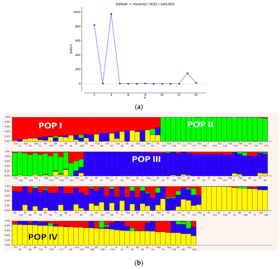 - Evanno, G.; Regnaut, S.; Goudet, J. Detecting the number of clusters of individuals using the software structure: A simulation study. Mol. Ecol. 2005, 14, 2611–2620. [Google Scholar] [CrossRef]