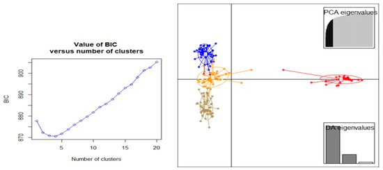 - Jombart, T.; Devillard, S.; Balloux, F. Discriminant analysis of principal components: A new method for the analysis of genetically structured populations. BMC Genet. 2010, 11, 94. [Google Scholar] [CrossRef]