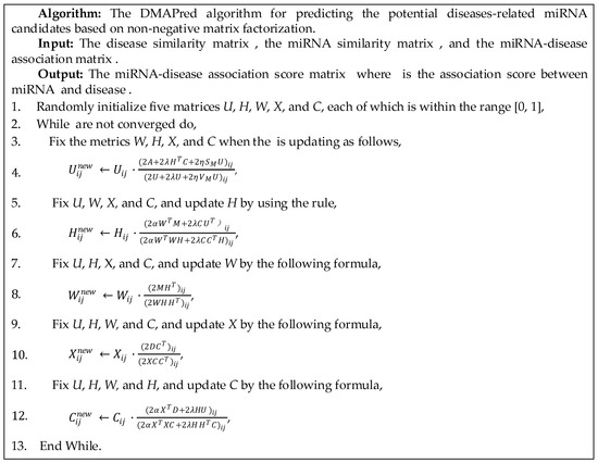 Several studies have shown that the abnormal expression of microRNAs (miRNAs) is inextricably related to the occurrence and development of diseases [1,2,3,4,5]. As the number of identified miRNAs continues to increase, a large number of disease-related miRNAs (disease miRNAs) are waiting to be identified.