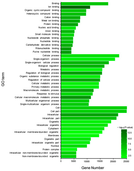 - Ye, J.; Fang, L.; Zheng, H.; Zhang, Y.; Chen, J.; Zhang, Z.; Wang, J.; Li, S.; Li, R.; Bolund, L.; et al. WEGO: A web tool for plotting GO annotations. Nucleic Acids Res. 2006, 34, W293–W297. [Google Scholar] [CrossRef] [PubMed]