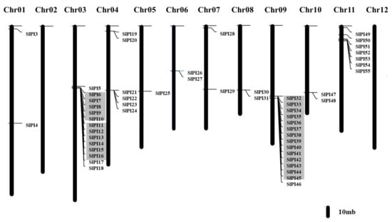 In this study, a tandem repeat gene is defined as a gene with an adjacent gene sharing the same domains and no more than one intermediate gene. A total of 29 genes are involved in tandem gene duplication (Figure 3). As shown in Figure 3, three groups of SlPI genes (SlPI 06/ SlPI07/ SlPI08/ SlPI09/ SlPI10, SlPI11/ SlPI12/ SlPI13/ SlPI14/SlPI15/SlPI16, and SlPI32–SlPI45) can be identified as tandem duplication genes. These genes belong to the STI, potato inhibitor II, and potato inhibitor I families, respectively, and are located in chromosomes 3 and 9. Hence, tandem duplication has significant contributions to the expansion of the SlPI gene families in tomato.