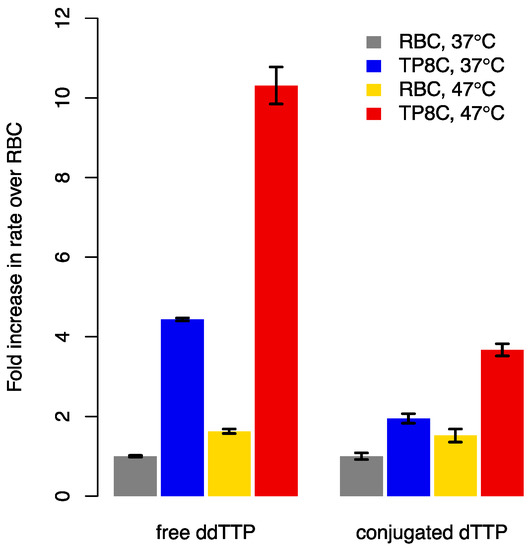 3.4. Elevated Reaction Temperature and Optimized Divalent Ion Concentrations Synergistically Accelerate Incorporation of Free and Conjugated Nucleotides into a Hairpin Primer