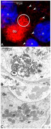 - Kloc, M.; Jedrzejowska, I.; Tworzydlo, W.; Bilinski, S.M. Balbiani body, nuage and sponge bodies-germ plasm pathway players. Arthropod Struct. Dev. 2014, 43, 341–438. [Google Scholar] [CrossRef] [PubMed]