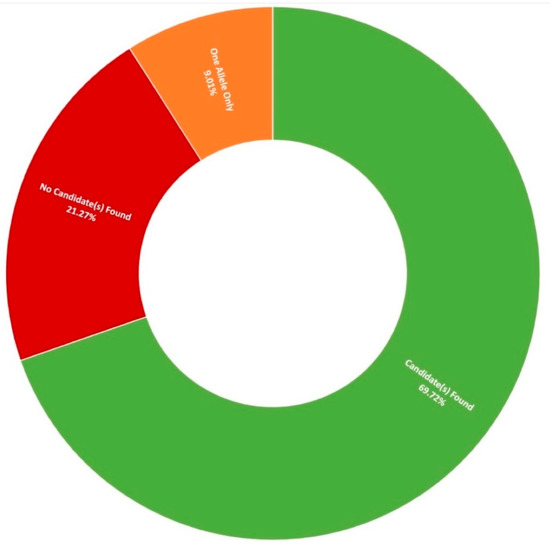Up to now, over 1000 individuals have been genotyped as part of Target 5000, accounting for over 20% of the estimated Irish IRD cohort. The results of this study thus far highlight the unique genetic architecture of IRDs in Ireland, cumulatively resulting in over 89 novel variants identified to date [15,27], 19 of which were missense mutations in addition to 1 novel structural variant identified in the most recent analysis (Table 2, Figure 11). With a positive candidate detection rate of almost 70% (495/710 pedigrees), Target 5000 highlights the value of sequencing the exons of 254 IRD-associated genes as well as some known pathogenic intronic regions. This is consistent with other sequencing studies of various IRD cohorts, which report a diagnostic yield of between 38–75% [17,46,47,48,49]. This range can be expected due a number of factors. Firstly, deep-phenotyping to accurately categorise IRDs greatly assists with genotype-phenotype assessment. Assessor variability will exist between clinics and studies, contributing greatly to the variability of diagnostic yield. Secondly, there are differences between the numbers of genes and regions sequenced in these cohorts, where smaller gene panels will not capture some of the known genes associated with IRDs [46]. Lastly, the employment of additional analyses such as WES or WGS in other studies has increased the detection of candidate variants in previously unresolved cases [18,49,50,51]. The candidate variant detection rate of Target 5000 demonstrates that target capture sequencing is a cost and time-effective first-tier approach for genetic screening of those affected by IRDs in Ireland.