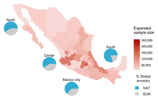 - Moreno-Estrada, A.; Gignoux, C.R.; Fernández-López, J.C.; Zakharia, F.; Sikora, M.; Contreras, A.V.; Acuña-Alonzo, V.; Sandoval, K.; Eng, C.; Romero-Hidalgo, S.; et al. The genetics of Mexico recapitulates Native American substructure and affects biomedical traits. Science 2014, 334, 1280–1285. [Google Scholar] [CrossRef] [PubMed]