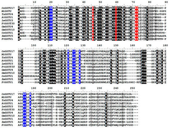 2.1. Protein Sequence Alignments and Structural Modeling of the OsGSTU17 Protein