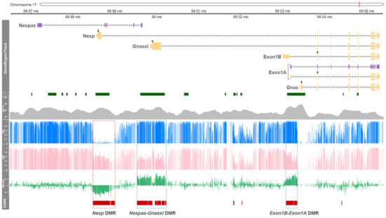 - Liu, J.; Yu, S.; Litman, D.; Chen, W.; Weinstein, L.S. Identification of a methylation imprint mark within the mouse Gnas locus. Mol. Cell. Biol. 2000, 20, 5808–5817. [Google Scholar] [CrossRef]