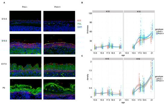 3.2. PML Expression Is Elevated in Basal Keratinocytes during Embryogenesis