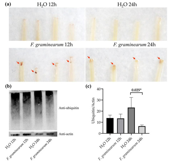 - Desmond, O.J.; Manners, J.M.; Stephens, A.E.; MaClean, D.J.; Schenk, P.M.; Gardiner, D.M.; Munn, A.L.; Kazan, K. The Fusarium mycotoxin deoxynivalenol elicits hydrogen peroxide production, programmed cell death and defence responses in wheat. Mol. Plant. Pathol. 2008, 9, 435–445. [Google Scholar] [CrossRef] [PubMed]