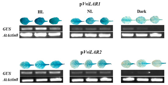 3.4. pVviLAR1 Activity Was More Sensitive than pVviLAR2 Activity in Response to Light Intensity Changes
