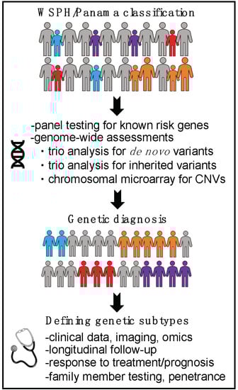 Identification of molecular subtypes of PAH has been proposed as a means to improve risk stratification, treatment, and outcomes. Obtaining a genetic diagnosis in children requires more extensive genetic testing than in adults (Figure 4). If testing for a panel of genes known to be associated with PAH is not diagnostic, children should be evaluated genome-wide for rare de novo and inherited variants with trio (parental and child) exome sequencing/chromosome microarray or genome sequencing. With knowledge of the causal gene, natural history, penetrance, and response to treatment can be refined for that specific genetic subtype of PAH to allow for more precise care for each genetically defined group. Individuals across genes in the same biological pathway can then be compared to assess similarities and differences.