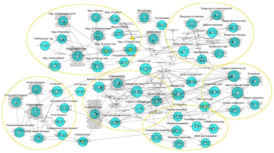 - Maere, S.; Heymans, K.; Kuiper, M. BiNGO: A Cytoscape plugin to assess overrepresentation of Gene Ontology categories in Biological Networks. Bioinformatics 2005, 21, 3448–3449. [Google Scholar] [CrossRef]
