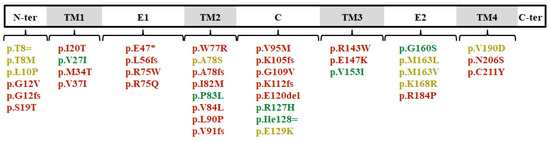 | c.79G>A | p.Val27Ile | 100/1200 (8.34%) | [77] | Benign | Benign | BA1, BP2, BS3_P |