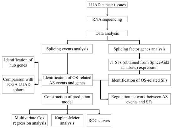 In this study, we conducted a systematic analysis of AS events and SFs in LUAD using our RNA-seq data and identified overall survival (OS)-related markers. Our results provide new insights for predicting the prognosis and evaluating clinical outcomes in LUAD patients and describe the underlying mechanisms.