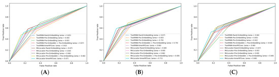 This section compares the performances of the proposed MirLocPredictor and TextRNN in terms of area under the receiver operating characteristic (AUROC). AUROC is widely used to evaluate the performance of classification models.