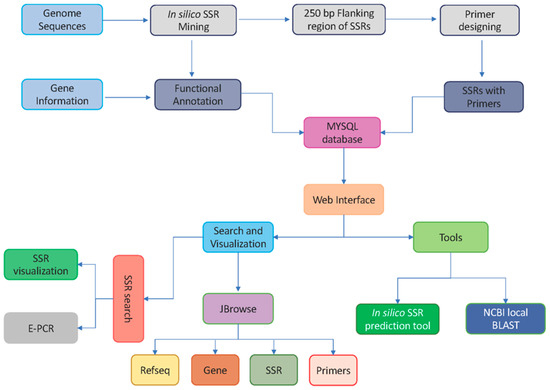 Though different microsatellite databases have been developed [37,38], due to the high number of species in these databases, they lack some features, such as e-PCR, browsing/visualizing SSRs on the genome, etc. Therefore, in addition to the existing databases, a dedicated database focusing on all available genomic data of the genus Citrus that contains a wide range of user-friendly features could be a valuable genomic resource for Citrus crop improvement and characterization.