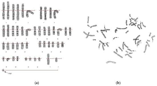 - Liehr, T.; Starke, H.; Senger, G.; Melotte, C.; Weise, A.; Vermeesch, J.R. Overrepresentation of small supernumerary marker chromosomes (sSMC) from chromosome 6 origin in cases with multiple sSMC. Am. J. Med. Genet. Part A 2006, 140A, 46–51. [Google Scholar] [CrossRef]