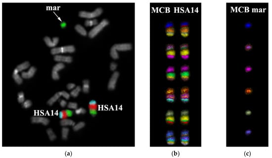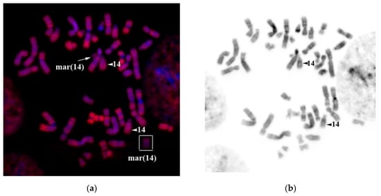 - Nietzel, A.; Rocchi, M.; Starke, H.; Heller, A.; Fiedler, W.; Wlodarska, I.; Loncarevic, I.; Beensen, V.; Claussen, U.; Liehr, T. A new multicolor-FISH approach for the characterization of marker chromosomes: Centromere-specific multicolor-FISH (cenM-FISH). Hum. Genet. 2001, 108, 199–204. [Google Scholar] [CrossRef]