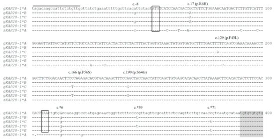 2.4. Sequencing of KRTAP28-1 Variants and Sequence Analyses