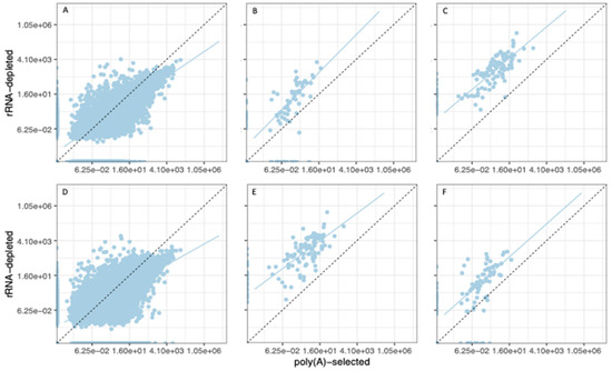 3.3. Organelle Expression Profiles Are Correlated between Poly(A)-Selected and rRNA-Depleted Libraries